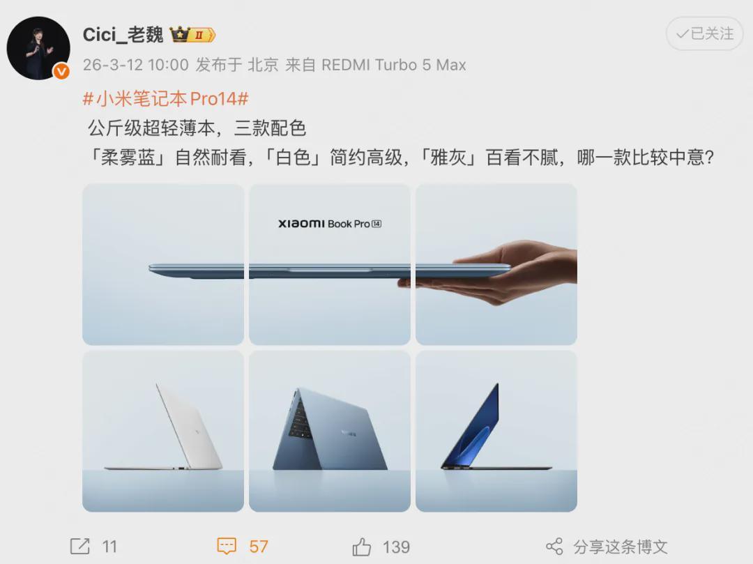 就在3月12日,小米突然在社交平台放出王炸——全新Xiaomi Book Pro 14正式官宣。